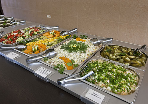 Вы можете выбрать тип питания по своему желанию "шведский стол" или 7-дневное заказное меню.